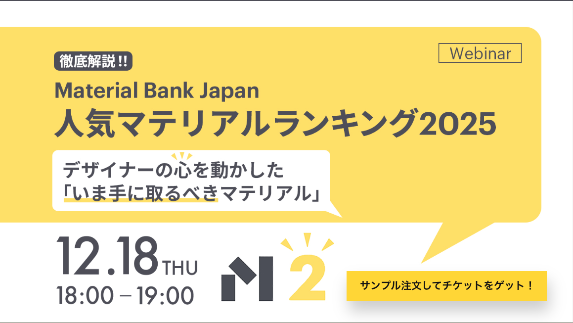 お客様の個人情報は、Material Bank Japanにてアカウントの作成および管理の目的で使用されます。個人情報の取扱いについての詳細は、こちらよりご確認いただけます。