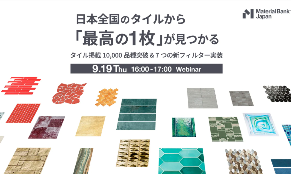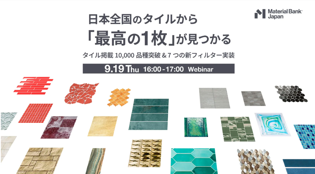 日本全国のタイルから、「最高の1枚」が見つかる 建築デザイナーとして、「あらゆる建材の中から、常に最高のものを顧客に提案したい」と思ったことはありませんか?Material Bank Japanは、そんな難題を簡単にするため、日々サンプルの品揃えと検索方法の改善を続けています。