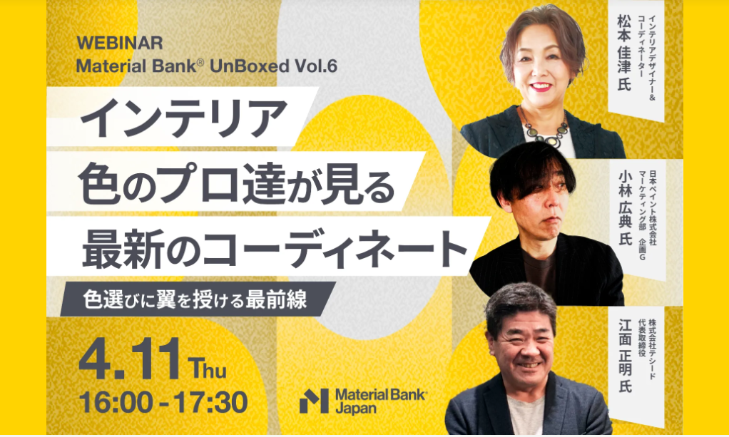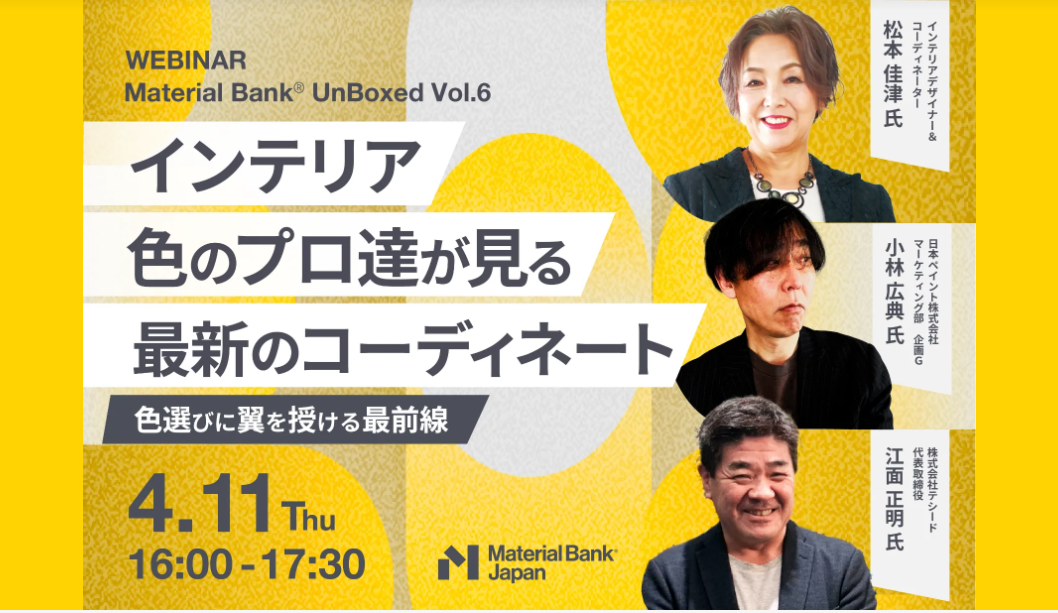お客様の個人情報は、Material Bank Japanにてアカウントの作成および管理の目的で使用されます。個人情報の取扱いについての詳細は、こちらよりご確認いただけます。